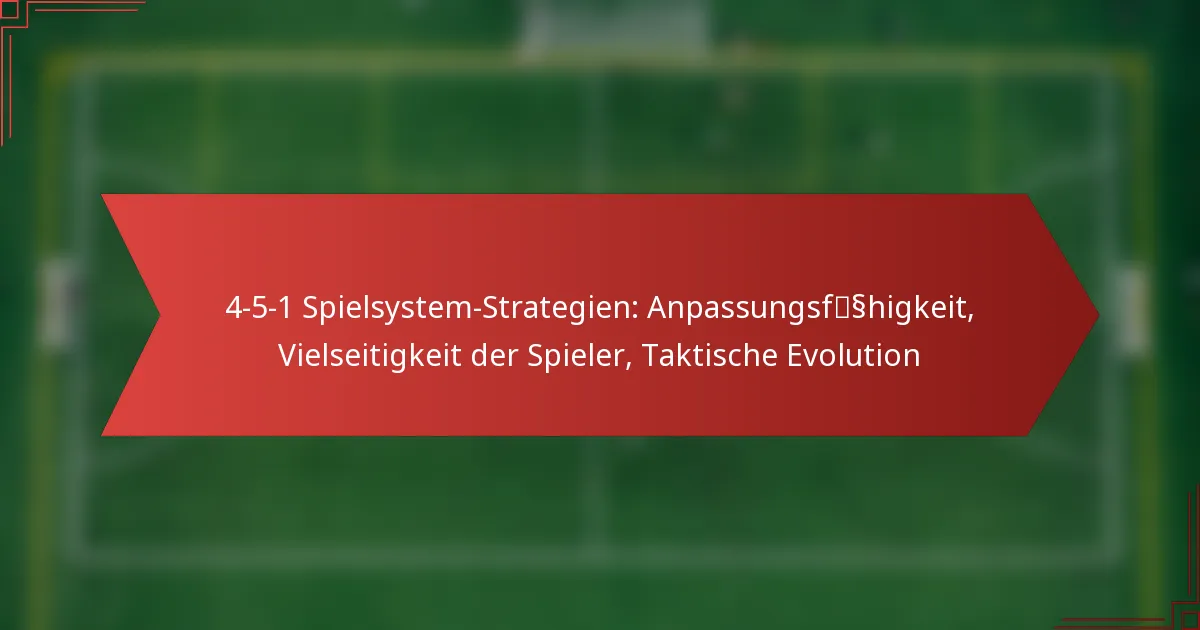 Die 4-5-1-Formation ist ein taktisches Setup im Fußball, das eine starke Präsenz im Mittelfeld betont und gleichzeitig defensive Stabilität wahrt. Ihre Anpassungsfähigkeit ermöglicht es den Teams, Strategien basierend auf den Dynamiken des Spiels zu modifizieren und effektiv auf verschiedene Herausforderungen zu reagieren. Durch die Nutzung der Vielseitigkeit der Spieler und spezifischer Fähigkeiten können Teams ihre taktische Entwicklung verbessern und sowohl defensive Widerstandsfähigkeit als auch Konterchancen sicherstellen.